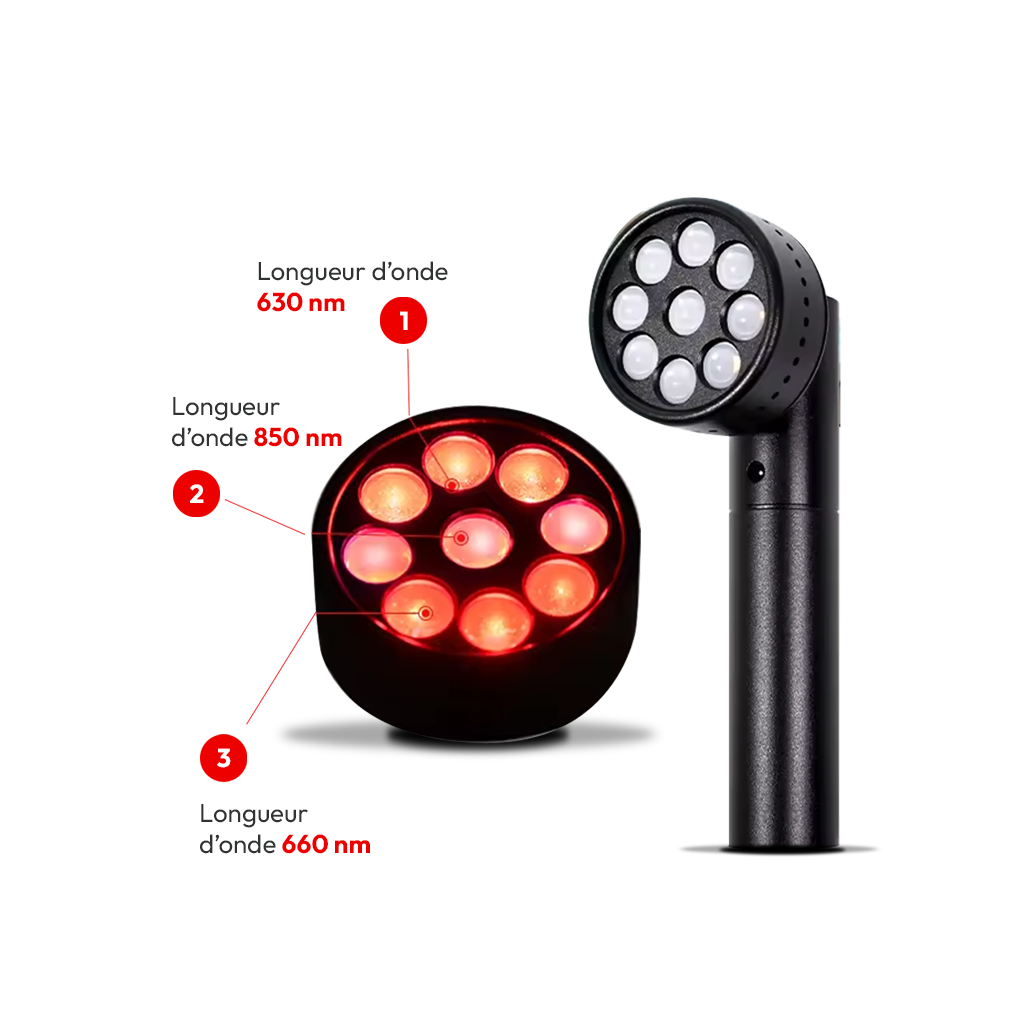 Compacte et puissante, la lampe Lumitherapy diffuse la lumière rouge et infrarouge qui :
